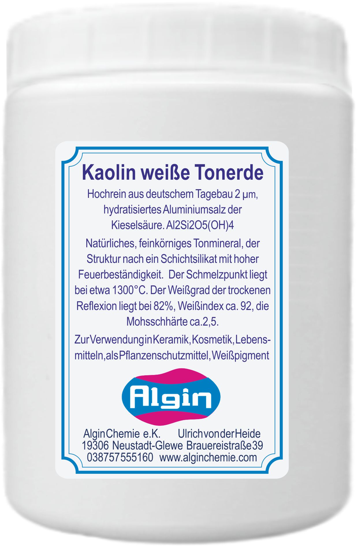Hauptbestandteil von Kaolin ist ein hydratisiertes Aluminiumsalz der Kieselsäure. Al2Si2O5(OH)4.