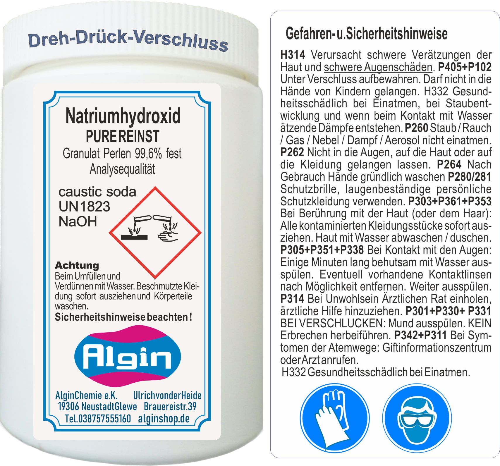 Stets einzuhaltende Sicherheitsvorkehrungen beim Handtieren mit Ätznatron: