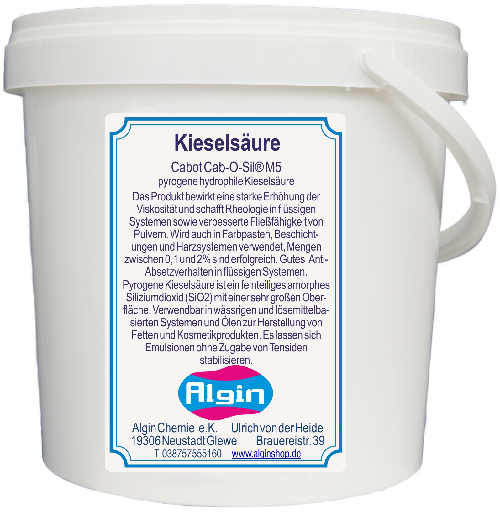 Das Produkt bewirkt eine starke Erhöhung der Viskosität und schafft Rheologie in flüssigen Systemen sowie verbesserte Fließfähigkeit von Pulvern. Wird auch in Farbpasten, Beschichtungen und Harzsystemen verwendet, Mengen zwischen 0,1 und 2% sind erfolgreich. Das Anti-Absetzverhalten in flüssigen Systeme ist sehr wirksam.