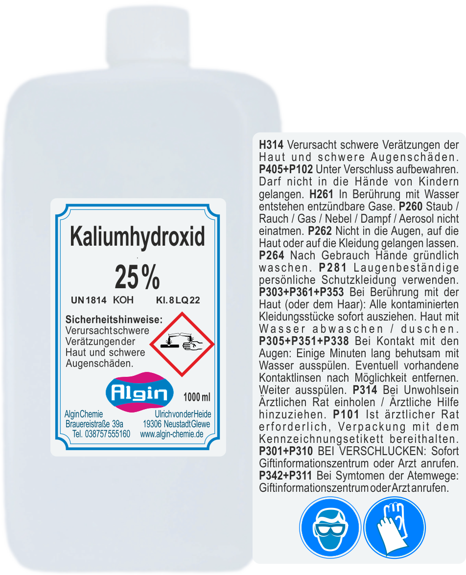 Achtung: Kaliumhydroxid ist in konzentrierter Form ein starkes und gefährliches Oxidationsmittel und muß mit größter Vorsicht beachtet werden. Die Beachtung und Einhaltung der für Ätzkali geltenden Sicherheitshinweise sind Bestandteil eines Kaufabschlusses. Der Käufer versichert ausdrücklich, diese zu befolgen. Vorzugsweise wird die Kalilauge zur Seifenherstellung verwendet, zum Gebrauch als Acculauge bieten wir eine besondere Qualität mit Lithiumschutz an.
