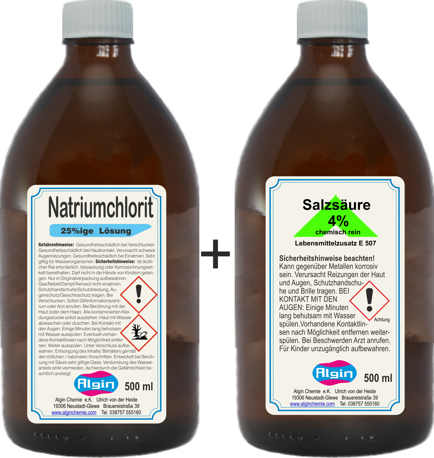 Natriumchlorit 25% + Salzsäure 4% 500ml in Glas 2-Komponenten-System ASPEX